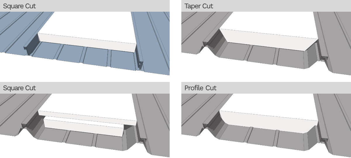 Flute Fill (FL) is custom cut foam used for retrofit applications for metal roofs that are being covered with a new roofing system. The flute fillers are made from rigid, closed cell Expanded Polystyrene (EPS) insulation offering cost effective performance. Adding flute fill insulation in between metal roof’s standing seams provides additional rigidity and R-value to the new roof, reducing the amount of insulation needed above the flutes. Shape and size of foam is custom manufactured for the specifics of each project for virtually limitless possibilities.
